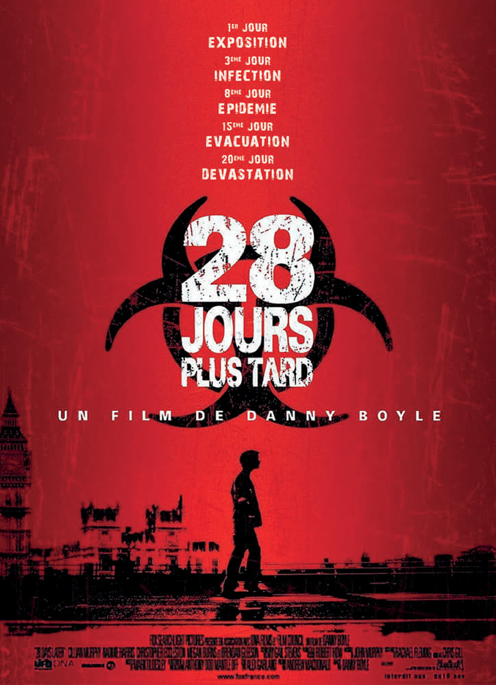 Un commando de défenseurs des animaux se rend dans un laboratoire afin d'y délivrer des chimpanzés soumis à d'étranges expériences. Ils ignorent que ceux-ci sont porteurs d'un virus d'une virulence incroyable et transmissible à l'être humain. 28 jours plus tard, Jim se réveille dans une ville morte d'où tous les habitants ont fui.