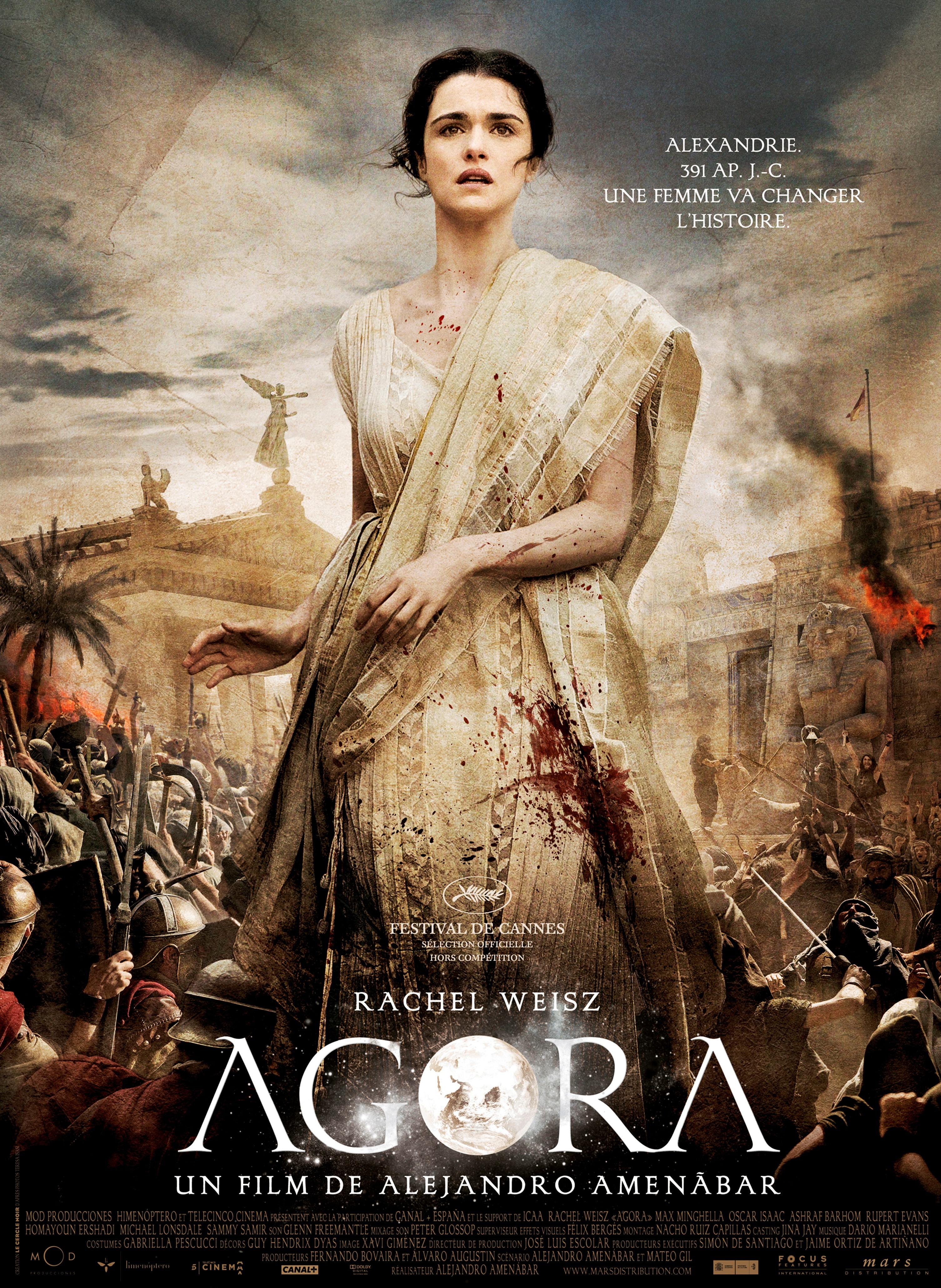 Sinon, maintenant que je sais à propos de quoi est réellement Agora, qu'est-ce que le film donne, dans l'ensemble ? Une belle fresque qui retrace les multiples conflits religieux d'une période de l'histoire un petit peu oubliée du grand écran. Elle révèle avec force, mais sans trop d'exagération, les atrocités commises par les hommes de toutes les confessions. Et là où le film est intéressant, c'est qu'il nous permet de suivre différents personnages, de confessions différentes, de sorte qu'on ne prend pas vraiment parti, pour une religion où une autre. Sans compter les groupes d'opinions différentes au sein d'individus de même confession... Au final, on prend quand même un parti; c'est celui d'Hypatie, défenseure du savoir et de la philosophie, dont les découvertes n'auront malheureusement pas traversé les âges. Je trouve quand même un peu dommage que, finalement, le personnage en faveur duquel le spectateur est n'ait pas un temps d'apparition plus important. J'aurais aimé rentrer un peu plus dans la tête de la philosophe.