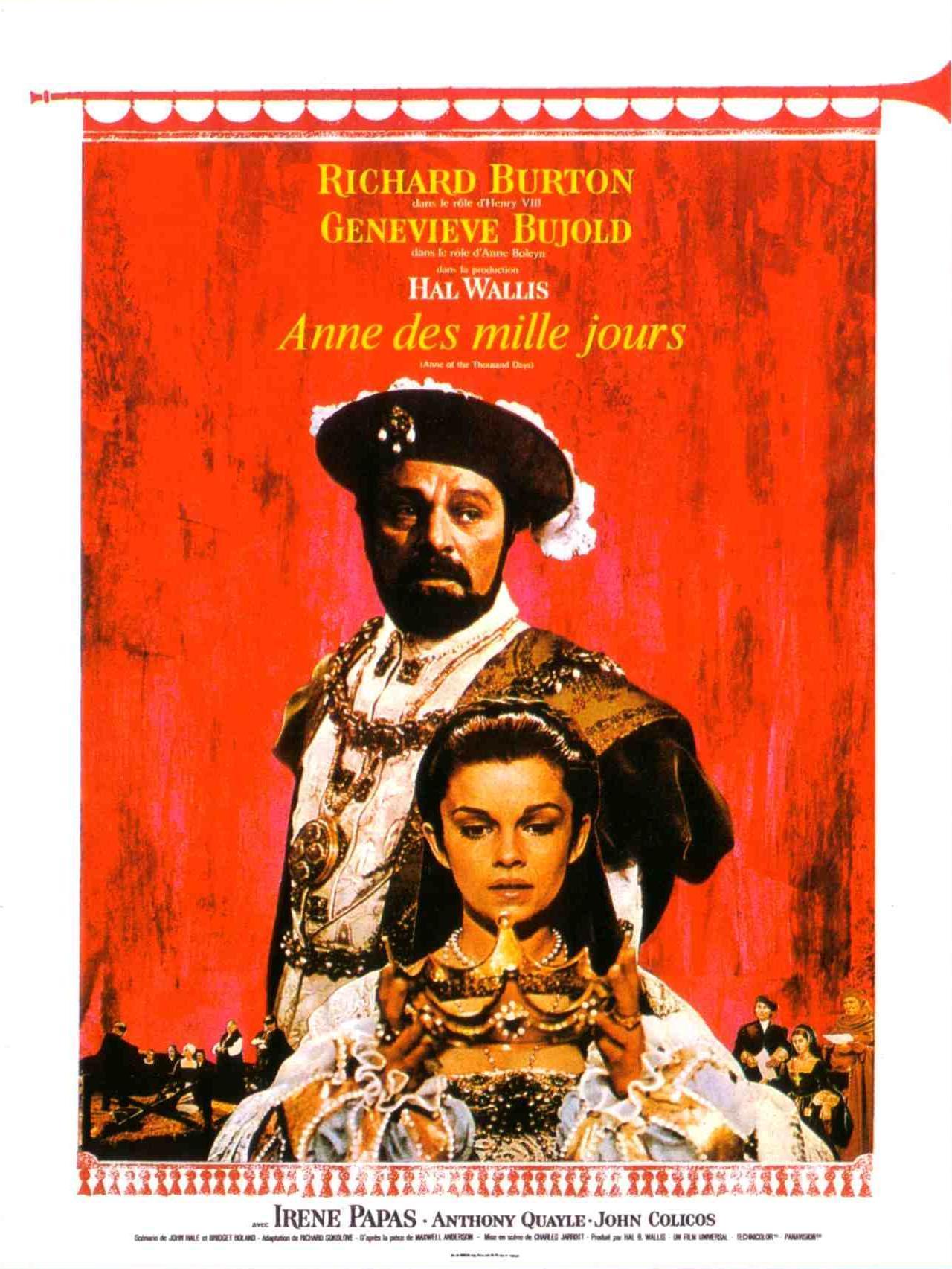 Le roi, sur les conseils de son secrétaire, Cromwell, rompt avec l'Eglise romaine et se proclame chef de l'Eglise d'Angleterre. Il s'empare des biens des monastères et épouse Anne. Celle-ci ne lui donnant pas le fils tant attendu, le roi décide de se débarrasser d'elle. Accusée d'adultère, elle est condamnée. Avant de mourir, elle constate qu'elle aura seulement vécu mille jours avec le roi...