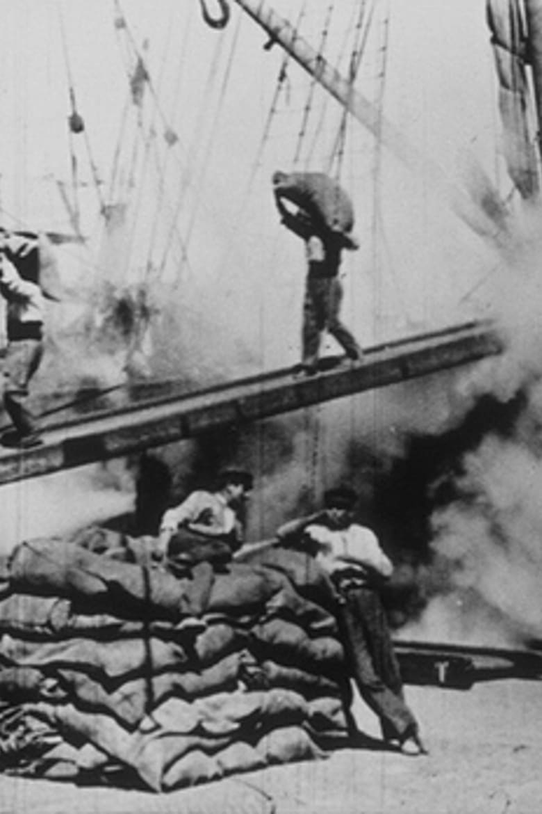 Des portefaix transportent des colis et des marchandises en traversant la passerelle, tandis que la vapeur sort par le côté du bâtiment (Source : themoviedb)