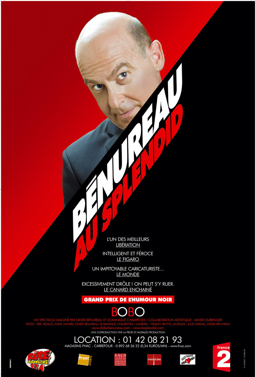 Pompidou, les extra-terrestres, un phénomène sexuel, un évêque travesti, la communauté des chauves en tutu, les bobos au Soudan, une femme de député alcoolique, les artistes enragés, les effets de la surconsommation chez les cons, l'équitation sans le cheval... avec en plus quelques chansons idiotes. C'est un spectacle festif et bien dégagé autour des oreilles qui mérite tous vos égards, et suscitera, c'est certain, votre admiration... en tout cas, c'est prévu comme ça...
