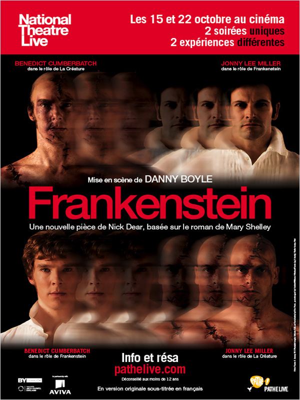 Après avoir affiché complet au National Theatre de Londres en 2011, la pièce en deux parties Frankenstein, mise en scène par Danny Boyle, arrive sur les écrans de cinéma.Dans cette nouvelle adaptation théâtrale de Frankenstein, Nick Dear est allé à l’essentiel de l’oeuvre de Mary Shelley en articulant les thématiques classiques mais toujours actuelles de la responsabilité scientifique, du bien et du mal, de l’apparence et des préjugés.Le réalisateur de Slumdog Millionnaire et de la cérémonie d’ouverture des Jeux Olympiques de Londres nous offre quant à lui une mise en scène spectaculaire et 2 soirées uniques, dans lesquelles les acteurs échangent leurs rôles. (Source : Allociné)