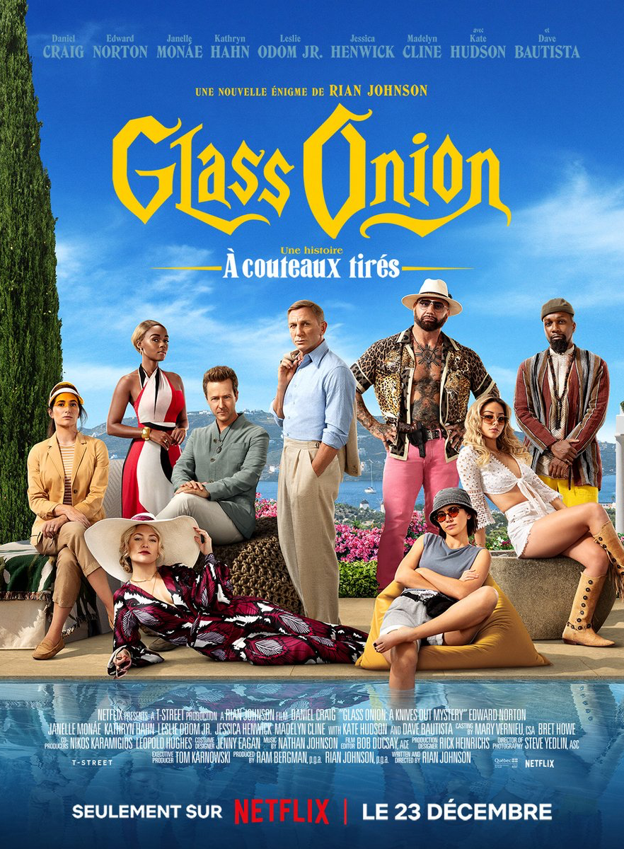 Les décors sont assez fous à l'image des personnages qui sont too much. On ne s'attache jamais réellement à quiconque ne s'appelle pas Benoit Blanc. Quelques gags sont réussis mais l'ensemble sonne assez faux, ce qui est certainement à l'image du personnage d'Edward Norton vous me direz. J'ai préféré A couteaux Tirés (on ne s'empêchera malheureusement pas de faire la comparaison), son côté huis clos pendant la majeure partie du film étant une plus value dans un whodunit. Et le reveal est trop peu surprenant (malgré quelques twists de milieu de film bienvenue).