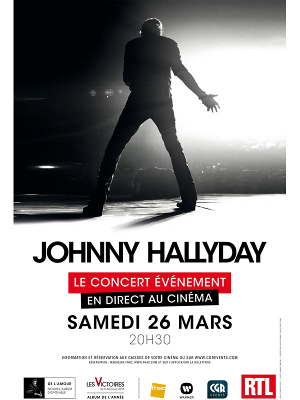 Pour la première fois, Johnny Hallyday s’invite en direct au cinéma, le 26 mars à 20h30, avec une diffusion satellite de son concert événement filmé à Bruxelles. Vivez l’intensité d’un concert exceptionnel dans votre salle de cinéma, comme si vous y étiez ! (Source : Allociné)