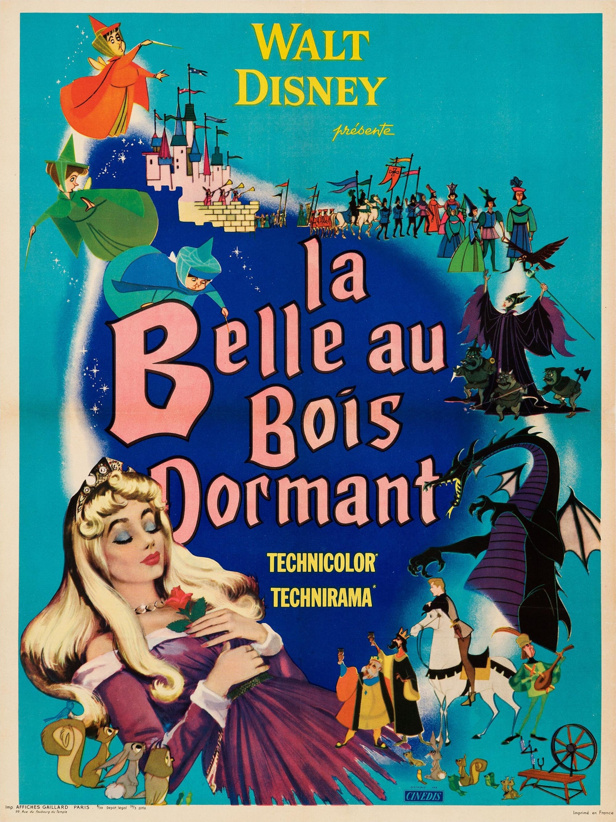 La princesse Aurore, victime d'un sort que lui a jeté la sorcière Maléfique, s'est endormie d'un profond sommeil dont le seul baiser d'un prince peut l'éveiller. Ses marraines, les fées Pimprenelle, Flora et Pâquerette, unissent leurs pouvoirs magiques pour aider le vaillant prince Philippe à combattre le redoutable dragon, gardien du château où dort Aurore. (Source : Allociné)