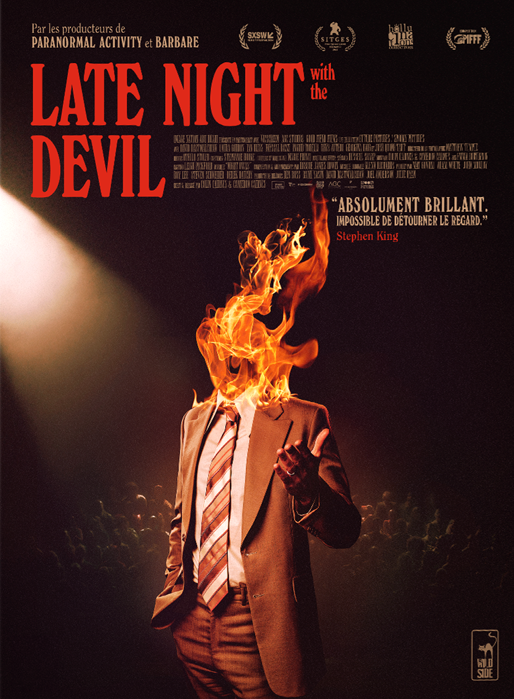 Dommage qu"il oublie parfois un peu trop son gimmick originel (je pense surtout aux scène tournées pendant les coupures publicitaires) car avec un peu plus de maîtrise dans sa réal, Late night with the devil avait tout d'un classique.