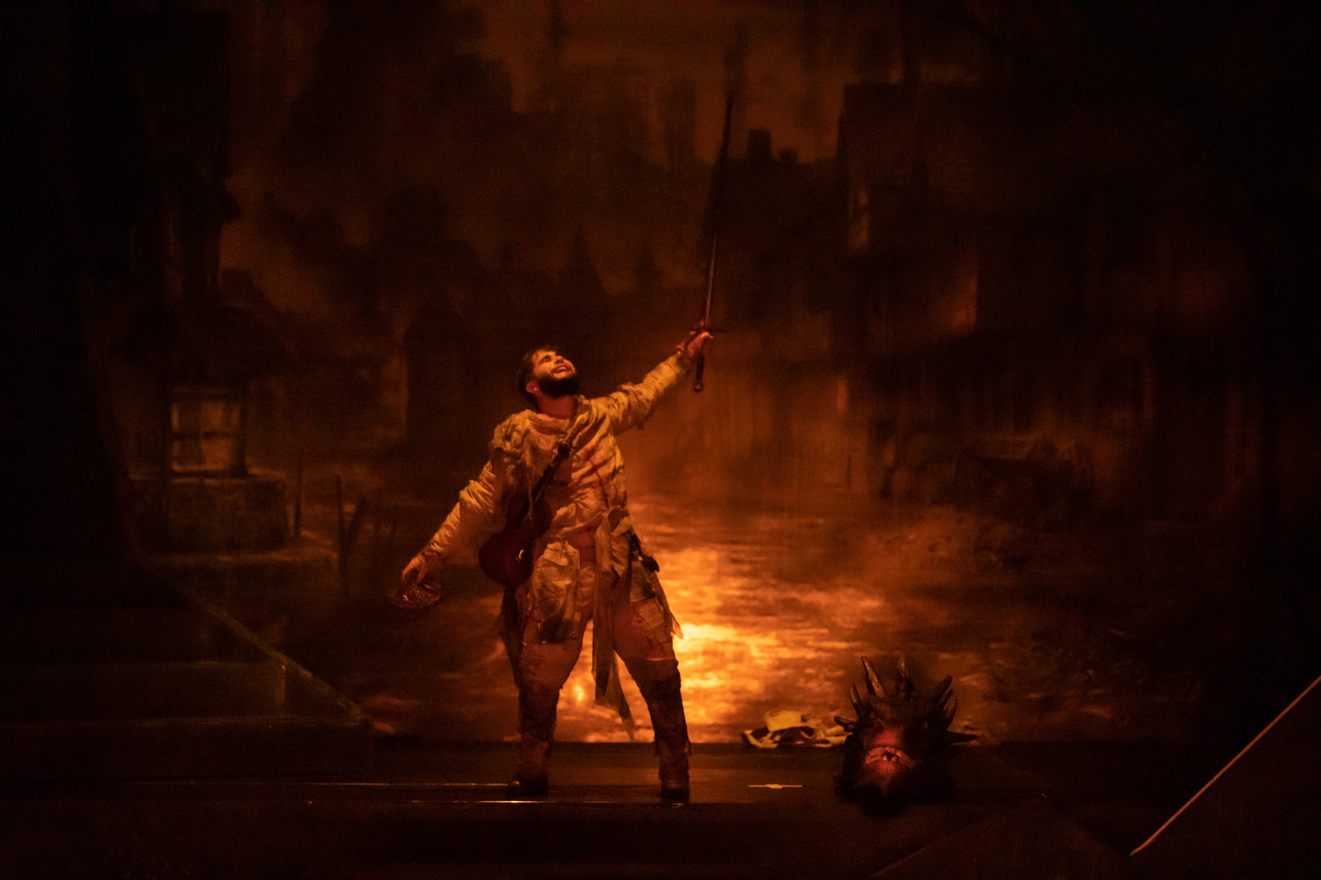 Depuis quatre siècles, un dragon à trois têtes règne en despote sur une ville imaginaire. Les autorités locales, complices et serviles, se plient à tous les caprices du monstre. Cette année, le dragon demande en sacrifice Elsa, la fille de l'archiviste Charlemagne. Elle est sur le point d'être jetée en pâture quand arrive Lancelot, un héros providentiel qui décide de sauver Elsa et de délivrer la ville.