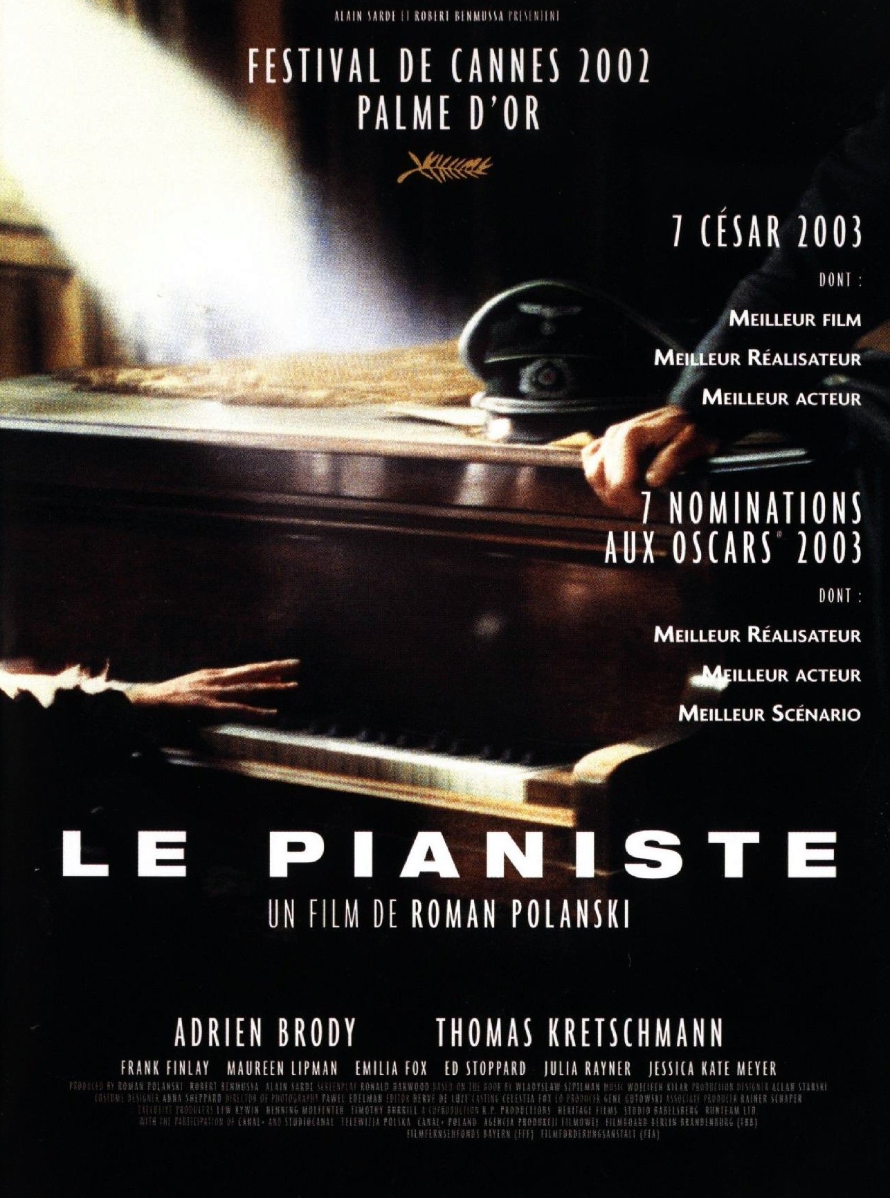 Le Pianiste, film qui a obtenu la palme d'or en 2OO2, ce qui est plus que mérité ! Ce film, l'histoire vraie d'un survivant du ghetto de Varsovie, est l'aboutissement de toute une vie et de toute une carrière. Merci Monsieur Polanski pour ce grand film troublant et bouleversant !