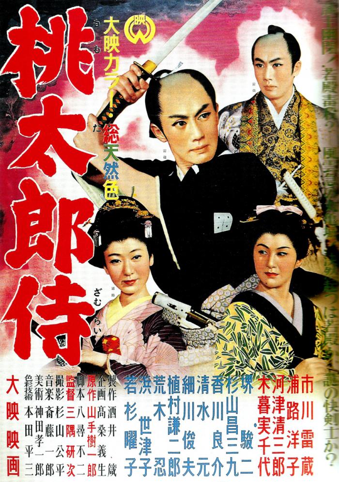 Il s'agit d'une première version de l'histoire traditionnelle du maître Momotaro Zamurai dans une version théâtrale. Ichikawa Raizo est magnifique dans le double rôle de Momotaro et son frère jumeau, Wakagi Shinnosuke, héritier du clan Sanuki. Cette longue recherche classique de la brillante équipe de Ichikawa Raizo et Misumi Kenji est l'un des films les plus charmants et agréables depuis de nombreuses années. Basé sur le conte populaire japonais du Légendaire garçon né dans une pêche qui combat le mal, Momotaro éclate sur la scène pour découvrir un complot diabolique par les hauts fonctionnaires du clan de son frère, pour usurper le processus de succession et installer un nouveau successeur.