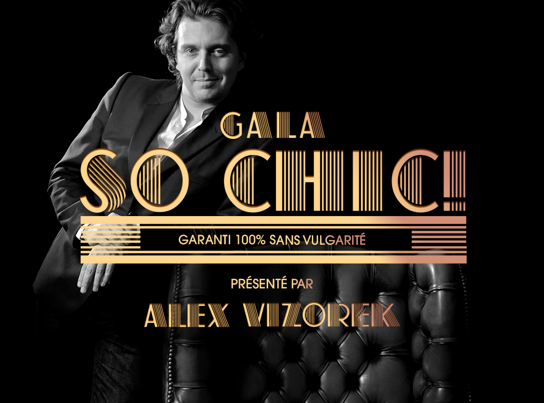 Marre ds vannes en dessous de la ceinture dans les spectacles d’humour? Las d’entendre les artistes se narrer par le menu leur vie sexuelle? Ce qui sans doute cache un manque, puisque c’est souvent ceux qui en parlent le plus qui… Bref, si vous avez envie de rire, avec un soupçon d’élégance à la française? Cela existe. Et c’est en Suisse que ça se passera. Le tout orchestré par un belge! Le plus élégant des humoristes de sa génération est sans conteste celui qui écrit ces lignes, moi, Alex Vizorek. Montreux m’a donc confié une mission : proposer au public un gala garanti « 100% sans vulgarité », et ce sera contrôlé par huissier. So Chic!, un gala où la finesse des blagues rivalisera avec la pertinence des bons mots ; le premier spectacle d’humour vraiment sans dérapage incontrôlé. Du moins, on va essayer…