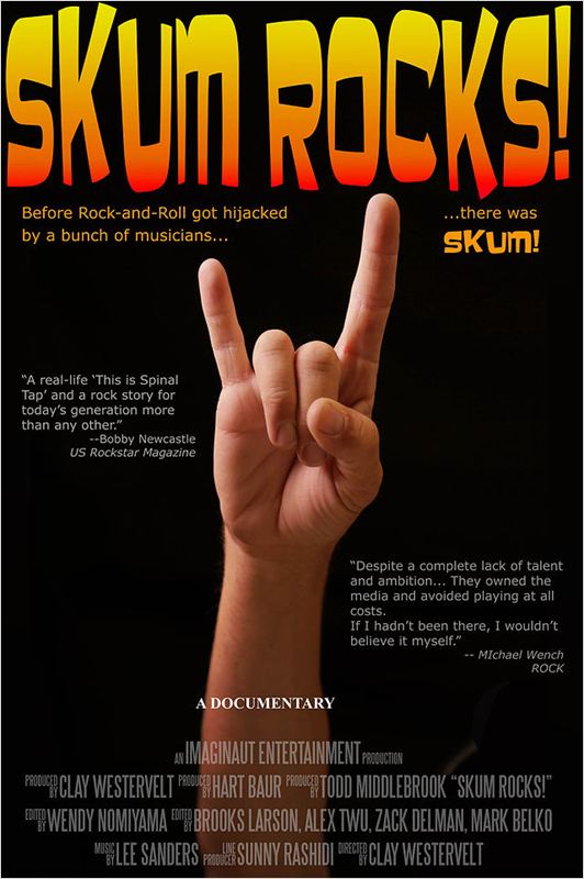 "Joue comme si la musique n'avait pas d'importance." L'histoire incroyable du groupe de musique qui a connu sur la côte est des Etats-Unis un succès retentissant à la fin des années 80, malgré un manque total de talent et d'ambition. Rendus célèbres par leurs agents, le groupe ne tarde pas à trouver des moyens innovateurs et originaux pour se faire chasser de la scène sans avoir à jouer. Narré par Alice Cooper, "Skum Rocks!" pourrait aussi être décrit comme un "Rock Forever" indépendant. (Source : Allociné)