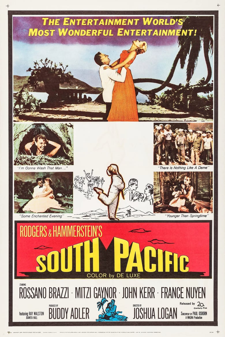 En 1943, sur une île du Pacifique, Nellie, une infirmière américaine, s'éprend d'un planteur français, Emile de Becque, qui a quitté son pays parce qu'il était accusé de meurtre. Mais elle accepte mal le fait qu'il ait déjà deux enfants, nés de son union avec une Polynésienne. Pendant ce temps, le lieutenant Cable tombe amoureux de la jeune Liat, fille d'une commerçante, mais refuse de l'épouser en raison de sa couleur de peau. Une mission à haut risque viendra bouleverser le destin de ces deux couples. (Source : themoviedb)