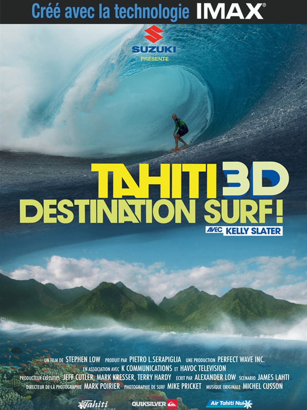 Tahiti 3D : Destination Surf ! met en scène le meilleur surfeur de tous les temps, Kelly Slater, et l'icône tahitienne du surf Raimana Van Bastolaer dans le cadre paradisiaque de la Polynésie Française. Grâce à la technologie 3D relief, la quête de la vague ultime que poursuit le film trouve ici une dimension esthétique et spectaculaire jamais atteinte auparavant. (Source : Allociné)