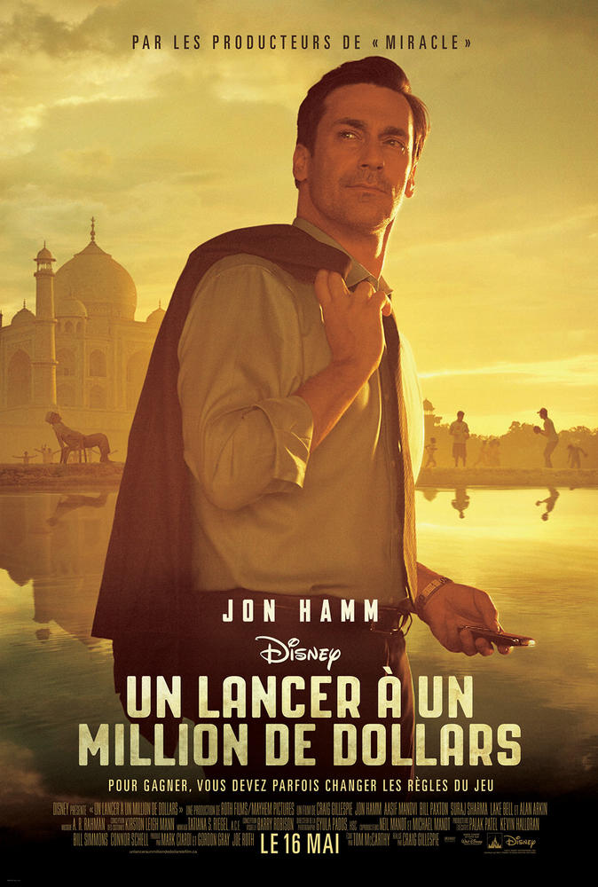 Les biopics, sinon rien ? Depuis plusieurs années déjà, nul ne semble pouvoir lutter contre cette nouvelle mode qui informe, apprend et séduit. Et pourtant, il faut se l’avouer, les échecs sont nombreux. Que ce soit à force de (trop) bien faire, ou que ce soit à cause de non droits, de grands noms du cinéma à l’image de Clint Eastwood (cf : "J.Edgar") ont eu la malchance de s’accaparer une histoire aux chemins très boueux. « Million Dollar Arm », à la différence de ses acolytes, a la particularité de partir avec quelques longueurs d’avance puisque peu sont ceux qui connaissent l’Histoire de ces champions de baseball triés sur le volet de l’autre côté du globe, en Inde. Résultat : un champ d’action plus vaste, des possibilités moins « contraignante ». Le spectateur est touché au vif car ce biopic est loin d’être le film le plus mielleux de Disney, cela grâce à l’utilisation intelligente des sens. Suraj Sharma (« L’Odysée de Pi) et Madhur Mittal (« Slumdog Millionaire ») sont irréprochables en futurs grands sportifs désabusés par un changement d’environnement, alors que JB, campé par le charismatique Jon Hamm, se réinvente totalement. Une très belle histoire qui, en plus de réchauffer le cœur, montre qu’il ne faut jamais s’arrêter de rêver.