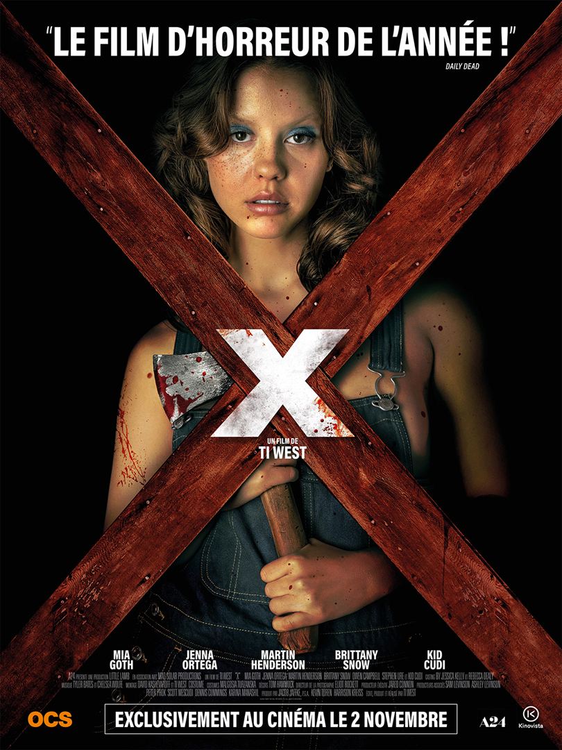 Autant dire que j'ai vraiment aimé, je suis carrément rentré avec l'affiche... sous réserve de s'adapter à son rythme plutôt lent et à son ton parfois déroutant, Ti West a su doser les effets pour entretenir une bonne atmosphère de mystère, et c'est esthétiquement parfait ! J'ai adoré le premier meurtre [spoiler] ce rouge magnifique, l'exaltation en forme de renaissance, la musique, tout y est joliment macabre [/spoiler]. Mia Goth est sublime ! Pas fan des autres du tout... c'est mon grand regret. Les personnages n'étant peu ou pas développés (surtout les rôles masculins), la première partie est un brin lourdingue. C'est ce qui pour moi empêche X d'être le cult-movie annoncé. Les situations très prévisibles sont bien présentes aussi, ce qui n'en fait pas une formalité pour autant, pas du tout. J'ai hâte de voir la suite.