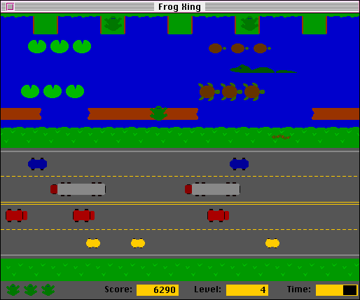 Frog Xing is a well-paced arcade game in which you guide a frog across a highway and a river to dock on the other side. You can catch bonuses along the way to score extra points.