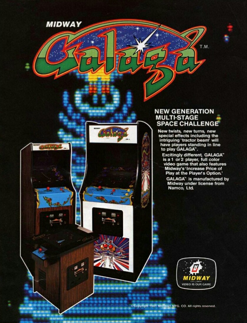 Galaga est un jeu vidéo de type shoot 'em up développé par Namco et commercialisé sur borne d'arcade en 1981. Il s'agit de la suite de Galaxian.