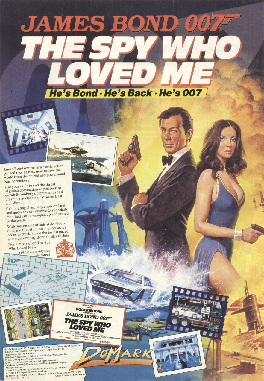 James Bond: The Spy Who Loved Me est l'adaptation sortie en 1990 du film éponyme. Sorti sur Amiga, Atari ST, Amstrad CPC, Commodore 64, DOS computers, Sega Master System et ZX Spectrum. Une version était prévue pour la PS1 mais elle a été annulée.