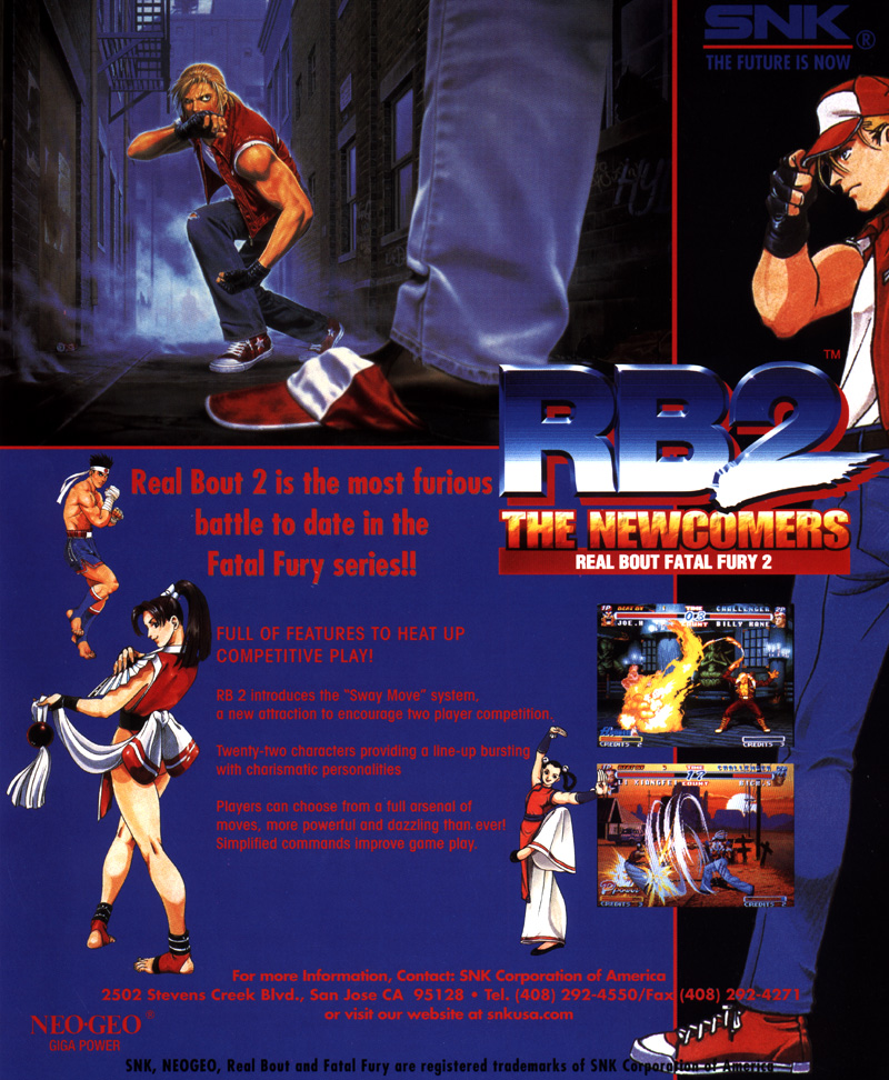 Son nom dévoile immédiatement le fait que le jeu comporte des nouveaux combattants. Cependant, à l'instar de Real Bout Fatal Fury Special, ce Real Bout 2 ne dispose d'aucun scénario. Pour rappel en ce qui concerne la "storyline" officielle, Geese Howard est bien mort à la fin de Real Bout Fatal Fury et Wolgang Krauser ne combat plus depuis qu'il a participé au tournoi King of Fighters de 1996. Tout ceci n'est donc que prétexte à de joyeuses empoignades.