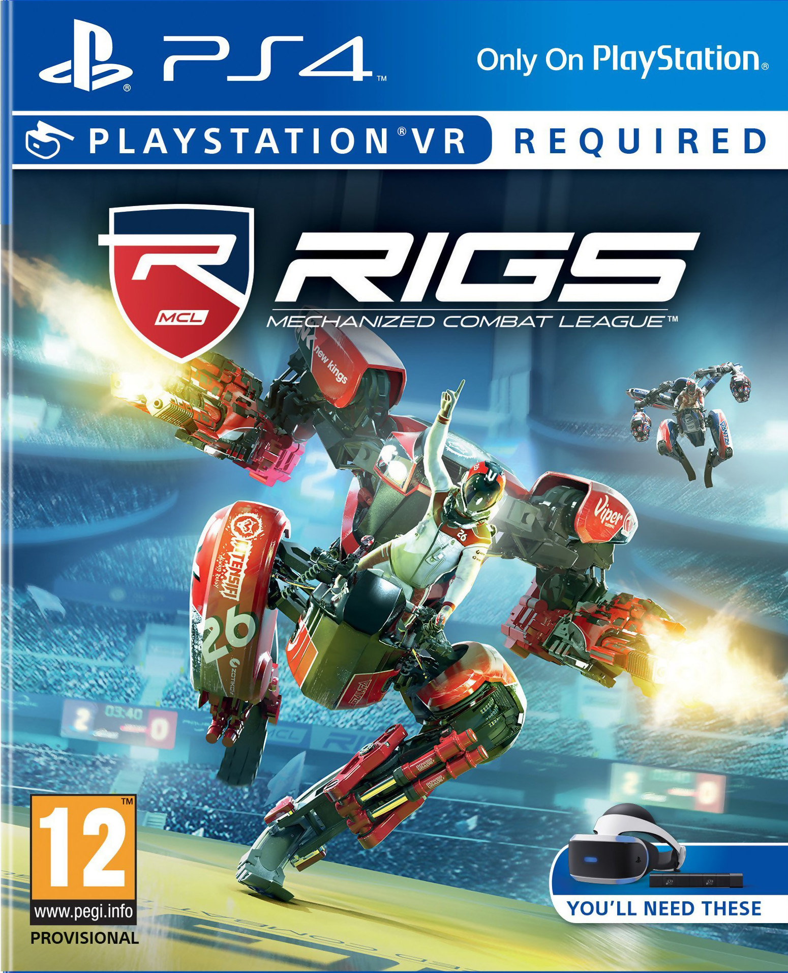 Nécessite le casque Playstation VR pour y jouer. RIGS: Mechanized Combat League propose au joueur de prendre le contrôle d'un robot géant nommé RIGS. Le principe est simple : deux équipes de trois joueurs s'affrontent à bord de leurs robots dans une arène. Ce sport futuriste se joue dans des arènes situées dans des lieux réels tels que Rio de Janeiro ou Dubai.