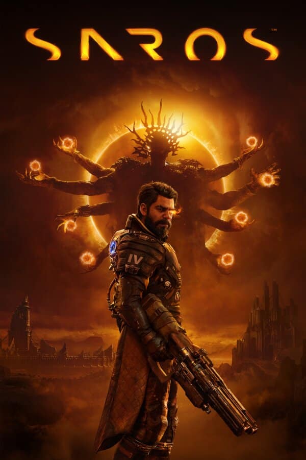 Saros est un shooter à la troisième personne développé par Housemarque et édité par Sony Interactive Entertainment. Inspiré de Returnal, le précédent jeu du studio finlandais, Saros reprend le concept du gameplay nerveux typique du genre bullet hell tout en proposant une ambiance des plus mystérieuses. On incarne ici Arjun Devraj, un soldat Soltari redoutable à la recherche d'une personne qui lui est chère. Prenant place sur la planète Carcosa et devant la menace d'une étrange éclipse, l'aventure se vit au rythme d'une boucle temporelle. Chaque nouvel essai change le monde qui nous entoure et nous permet d'améliorer Arjun de façon permanente, le rapprochant à chaque tentative de son but.