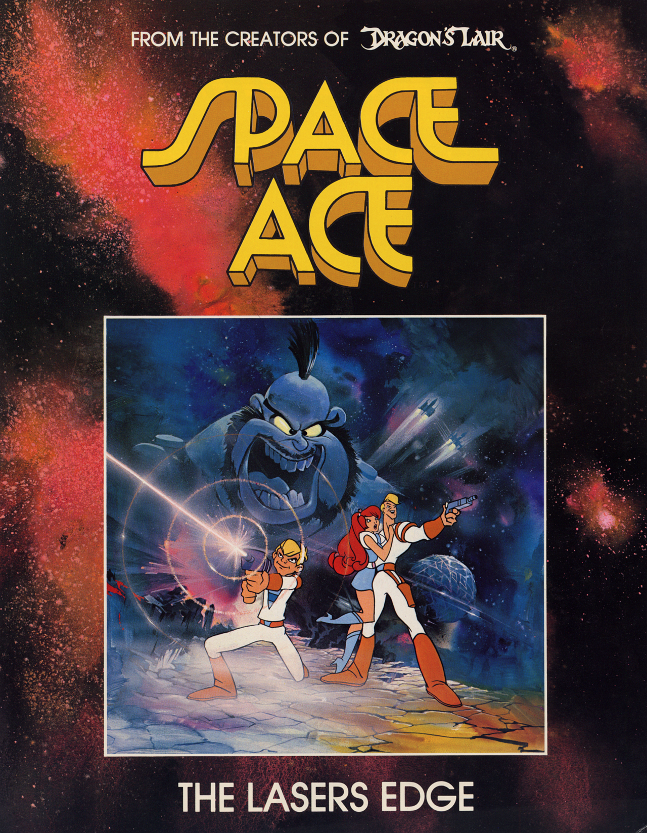 Space Ace suit les aventures du héros fringant Dexter, mieux connu sous le nom de "Ace". Ace a pour mission d'arrêter le méchant commandant Borf, qui cherche à attaquer la Terre avec son "Rayon Infanto" pour rendre les Terriens impuissants en les transformant en nourrissons. Au début du jeu, Ace est partiellement touché par l'Infanto Ray, qui le transforme en adolescent, et Borf kidnappe son acolyte Kimberly, qui devient ainsi la demoiselle en détresse du jeu. C'est au joueur de guider Ace, sous sa forme adolescente de Dexter, à travers une série d'obstacles à la poursuite de Borf, afin de sauver Kimberly et d'empêcher Borf d'utiliser l'Infanto Ray pour conquérir la Terre. Cependant, Dexter dispose d'un gadget de montre-bracelet qui lui permet éventuellement de `` ÉNERGISER '' et d'inverser temporairement les effets du rayon Infanto, pour le transformer à nouveau en Ace pendant une courte période et surmonter des obstacles plus difficiles de manière héroïque. Le mode d'attraction du jeu présente l'histoire au joueur via la narration et le dialogue. (Source : Wikipédia)
