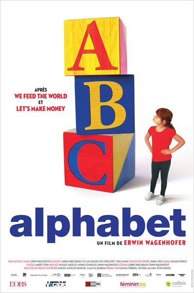 Les méthodes pédagogiques utilisées pour éduquer nos enfants ne sont-elles pas dépassées ? De la France à la Chine, de l'Allemagne aux États-Unis, "Alphabet" questionne un système éducatif qui privilégie la performance au détriment de la créativité et de l’imagination. En exposant au grand jour les limites d’un modèle hérité de la révolution industrielle, pédagogues, chercheurs, scientifiques, chefs d’entreprise et élèves abordent le rôle de l’enseignement et envisagent des voies alternatives à nos pratiques actuelles. Après We Feed The World (sur la crise alimentaire) et Let’s Make Money (sur la crise financière), Alphabet clôt « la trilogie de l’épuisement », comme l’appelle son réalisateur Erwin Wagenhofer.(Source : Allociné)
