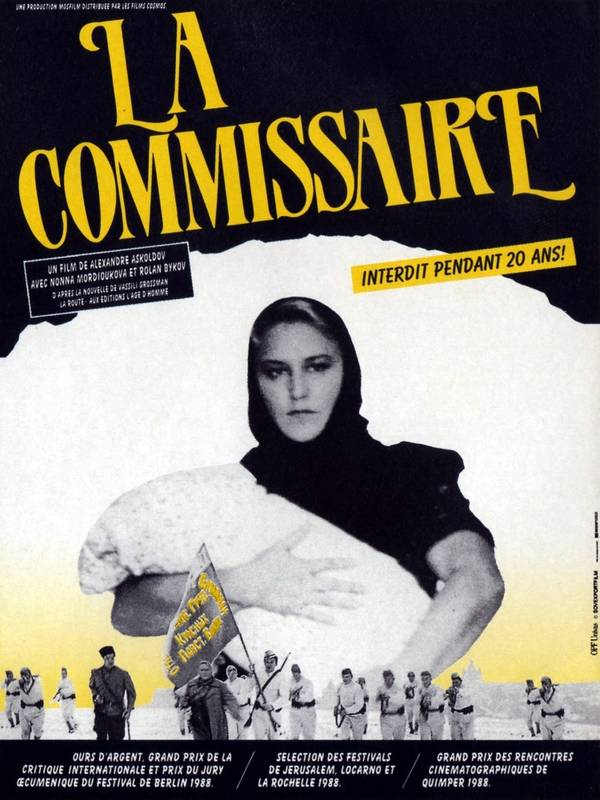 Une petite ville d'Ukraine en 1922. La commissaire, Klavidia Vavilov, chargée de la bonne tenue militaire des troupes d'un détachement de l’Armée Rouge s'installe dans la ville reprise aux Blancs. Femme dure qui n’hésite pas a faire fusiller un déserteur coupable d’être aller retrouver sa femme pendant quelques jours mais aussi femme tout court sur le point d'accoucher malgré tous les efforts pour faire passer l'enfant indésirable... Unique film d'Alexandre Askoldov réalise en 1967 et censure jusqu'en 1987. Ours d'Argent -Berlin 88. (Source : Allociné)