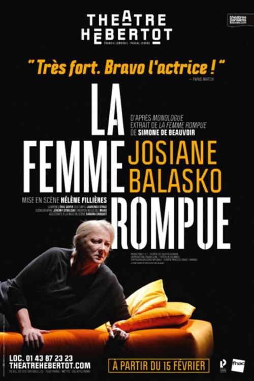 Cette femme, c’est Josiane Balasko, « cette petite bonne femme franche intrépide intègre » comme dit Beauvoir. Une actrice rugueuse qui ne minaude pas pour séduire ni pour attirer la compassion. Une femme de caractère. Sans concession. « Une femme vraie, qui ne joue pas le jeu ». Bouleversante, elle cache sa sensibilité. Comme si baisser sa garde pouvait la fragiliser. Une partition sous forme d’autoportrait. (Hélène Fillières)