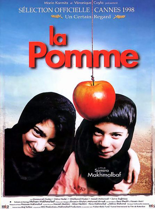 Dans un quartier pauvre de Téhéran, des familles se sont unies pour révéler au bureau de l'Aide sociale qu'un de leurs voisins ne laisse jamais sortir ses enfants. Une assistante sociale est chargée de l'enquête. On découvre alors que deux fillettes de 11 ans, des jumelles, vivent derrière des barreaux dans leur maison depuis leur naissance. Argument du père : « Mes filles sont comme des fleurs. Il ne faut pas les montrer au soleil, sinon elles se faneraient vite. » Les deux filles finissent par être libérées par l'assistante sociale et commencent alors un voyage dans le monde extérieur dont elles ignorent encore tout. Leur rêve est de posséder une pomme. Au cours de leur périple, elles rencontrent un garçon qui leur fait miroiter le don d'une pomme, qu'il balance au bout d'une ficelle juste hors de leur portée.