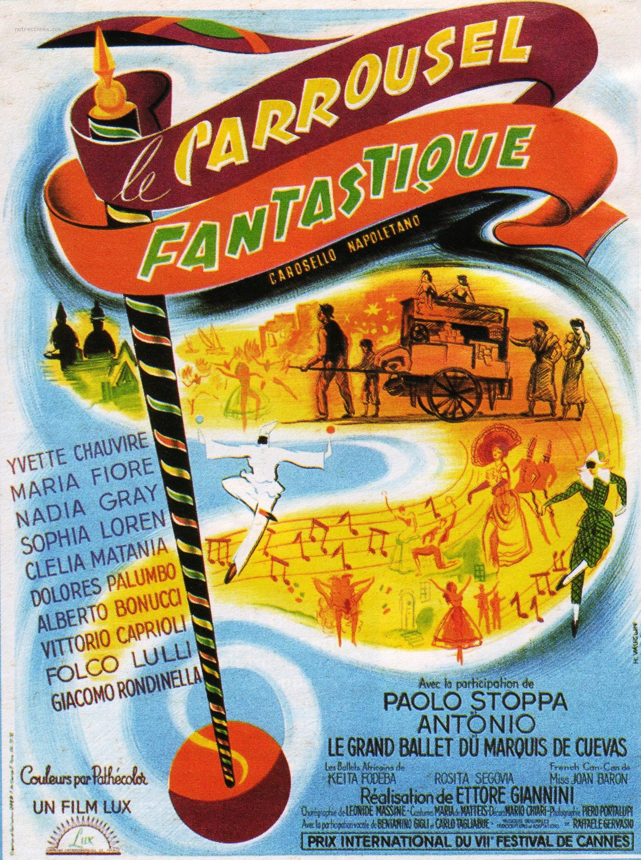 Naples, dans les années 1950. Pour nourrir sa famille nombreuse, Salvatore Esposito, chanteur ambulant, parcourt les rues de la ville en poussant son orgue de barbarie. Un jour, un violent coup de vent arrache les partitions de son instrument et voilà qu'apparaissent les événements dont parlent ses chansons. Assisté de Francesco Rosi, Ettore Giannini adapte à l'écran le spectacle qu'il avait créé pour la scène. Dans cette comédie musicale teintée de fantastique, il invite à une balade enchantée dans la cité napolitaine. À travers de multiples sketches, des chansons populaires et des ballets admirablement chorégraphiés, Le Carrousel fantastique conte divers épisodes de l'histoire de Naples. Un portrait de ses coutumes et de ses habitants, qui traduit leur formidable joie de vivre.