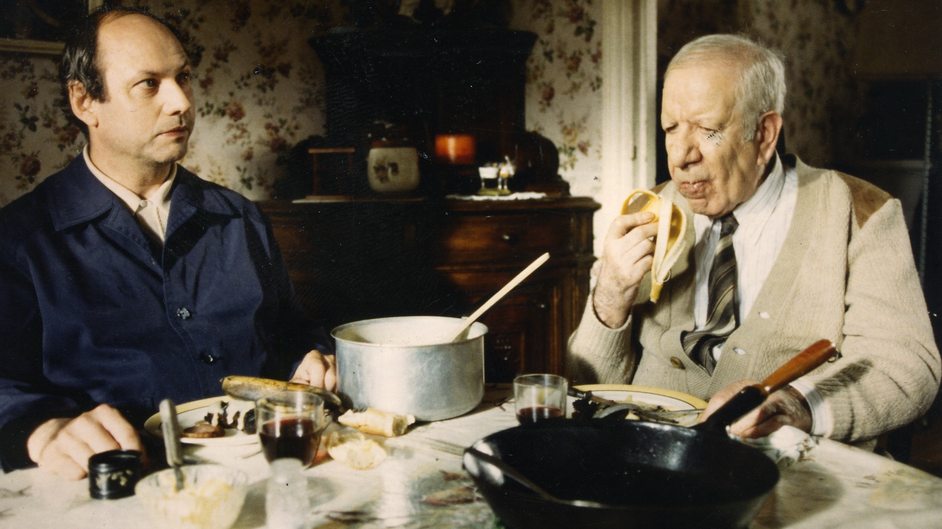 Maurice et Lucien vivent tous les deux dans la même rue. L’un est célibataire, l’autre veuf. Quand Lucien a perdu sa femme, Maurice lui a dit "Vous viendrez manger à la maison, Lucien". Depuis, Lucien vient chaque jour...