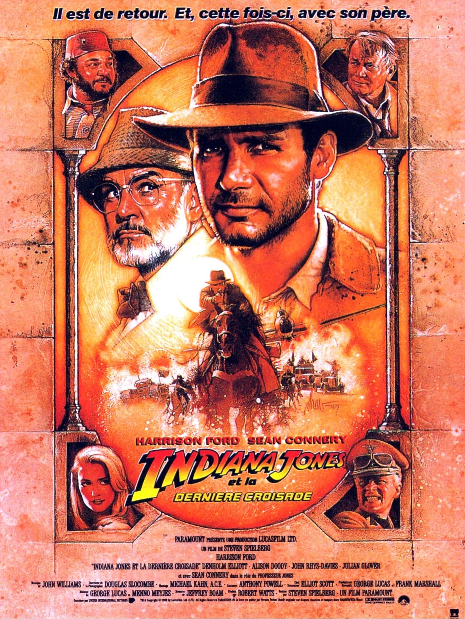 Et c'est donc pas moins de deux Jones qui seront à l'écran pour partir à la recherche de la relique la plus mystique et la plus importante de la chrétienté. On retrouve Marcus Brody qui pour le coup campe un archéologue "crédible", ainsi que Sallah, tous deux déjà vus dans le premier film. Et chez les antagonistes, on retrouvera les clichés du genre : sadiques, obnubilés, et finalement aveuglés par l'appât du gain. On regrette ce manque d'évolution par rapport aux deux métrages précédents.