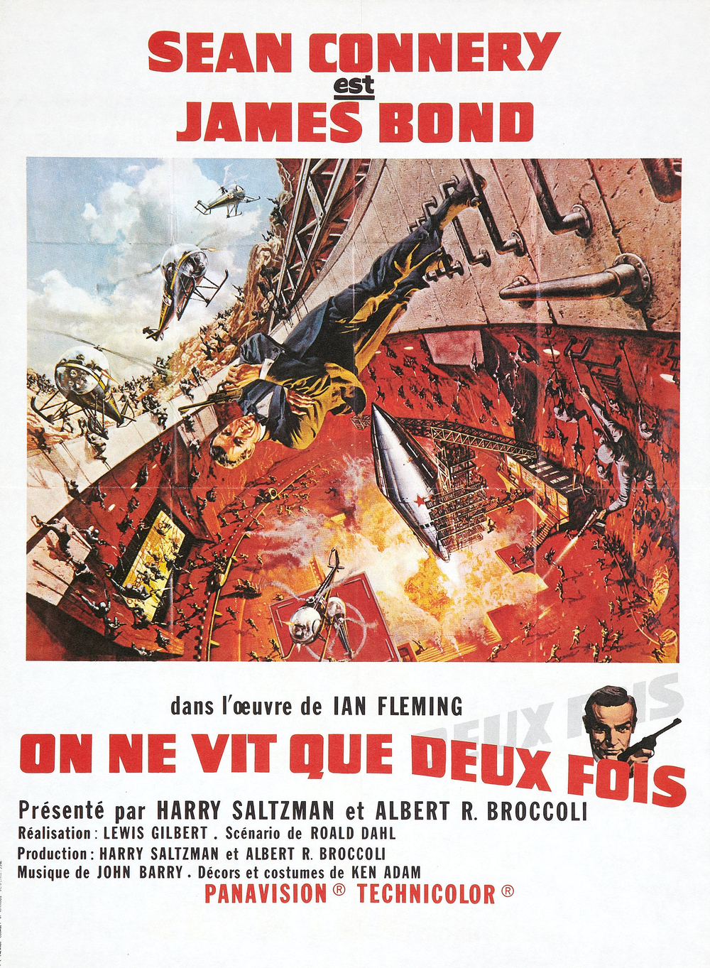 Dernier film de Sean Connery (même s'il reviendra) avant le premier changement d'acteur pour le personnage de James Bond. On ne vit que deux fois présente quelques originalités. Déjà le scénario est écrit par Roald Dahl. Ensuite la quasi-totalité de l'intrigue se déroule au même endroit, ici le Japon. La musique accompagnera d'ailleurs ce choix avec des sonorités asiatiques dans certains thèmes. M, Q et Moneyenny apparaitront mais sans que l'on voit une seule fois le MI6. Il y a encore une fois une séquence d'action très originale avec [spoiler] le combat aérien lorsque Bond pilote la "Petite Nellie" [/spoiler]. Et enfin, pour la première fois le [spoiler] visage de Blofeld [/spoiler] est révélé. La dernière demi-heure du long-métrage avec [spoiler] le base secrète de Blofeld et la bataille finale [/spoiler] est d'ailleurs mémorable. Symbole de ce succès, de nombreuses œuvres de fiction s'inspireront par la suite du [spoiler] repaire dans le volcan [/spoiler].