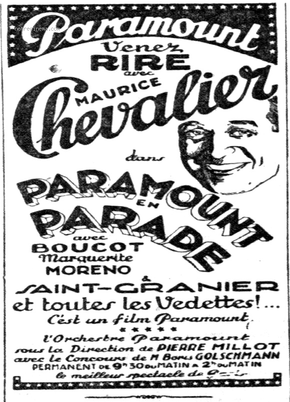Ce film n'est que l'adaptation en français avec des comédiens français du film américain Paramount on Parade, dans lequel Maurice Chevalier était déjà présent. La version américaine est une suite de sketchs chantés par toutes les vedettes de la Paramount, dont certains sont tournés en Technicolor, version primitive.