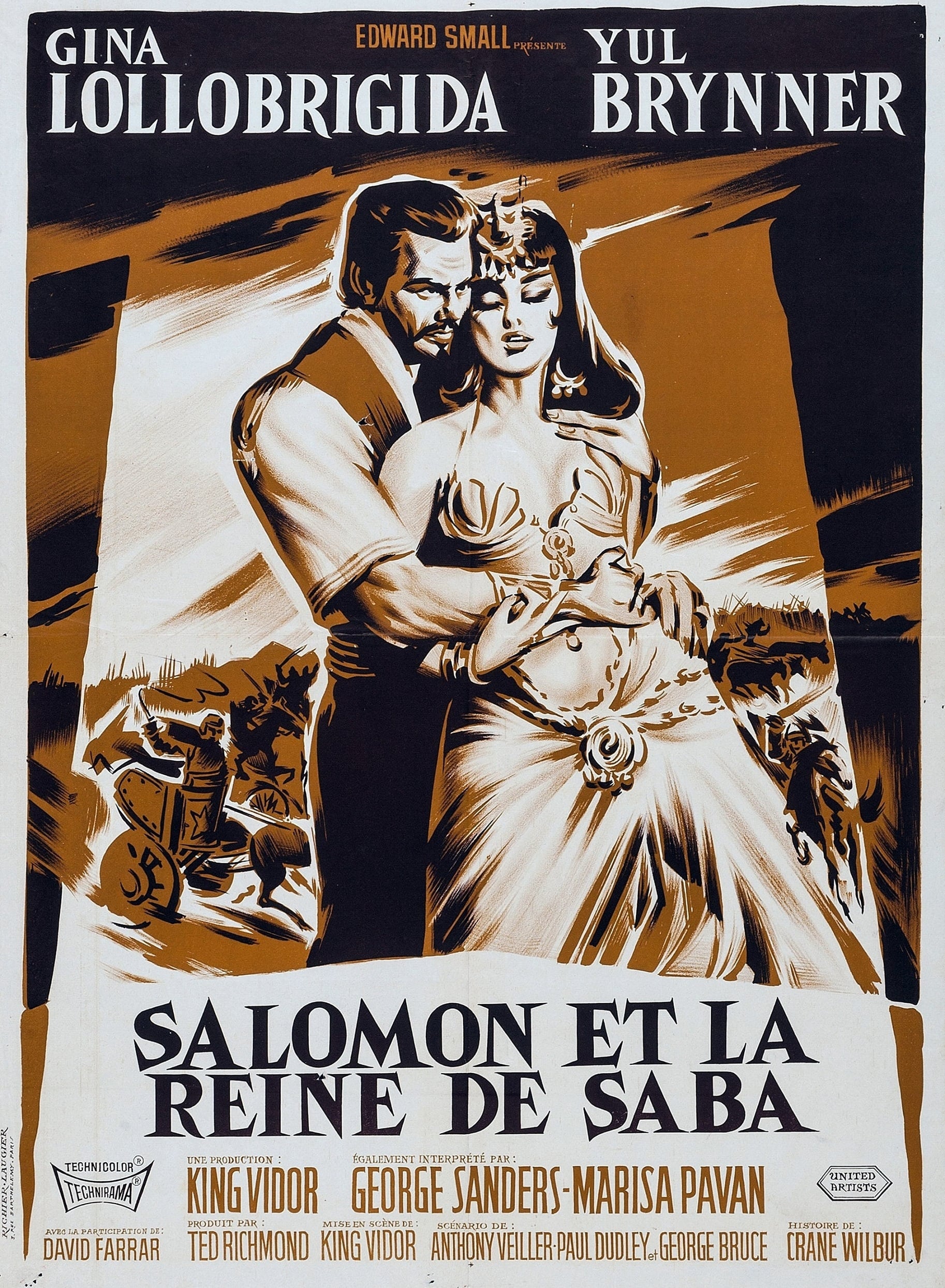 Salomon et son frère Adonijah viennent à peine de vaincre les Égyptiens, qu'ils sont appelés au chevet de leur père moribond, le roi David, pour recueillir ses ultimes volontés. C'est Salomon qui montera à sa suite sur le trône. Malade de dépit, Adonijah jure de se venger. Pharaon, qui ne s'est pas résigné à sa défaite, envoie sa fidèle alliée, la reine de Saba, en visite chez le nouveau roi des Hébreux. La belle et redoutable souveraine a pour mission de séduire son hôte et de le détourner des affaires militaires. Mais, tout en déployant ses charmes, elle s'éprend de l'homme qu'elle voulait perdre, cependant que celui-ci résiste difficilement à tant d'éblouissante beauté...