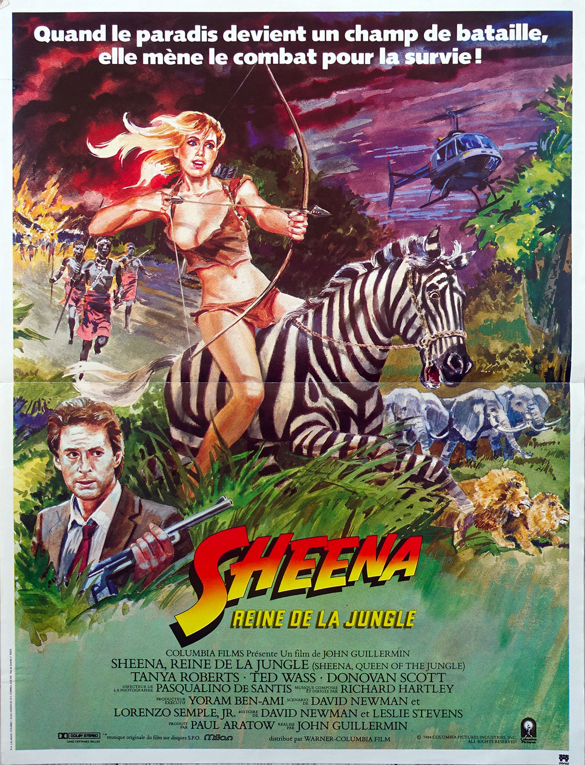 A la mort de ses parents dans un éboulement, une petite fille se retrouve seule dans la jungle. Lorsqu'elle sort de la grotte où l'accident s'est produit, la fillette est recueillie par la tribu des Zambuli, qui voit en elle la reine Sheena, censée les protéger. Destinée au trône, Sheena est initiée par la prêtresse Shaman, qui lui transmet ses pouvoirs. Non loin de là, le prince Otwani, qui cherche à s'approprier le précieux titane que contient la montagne sacrée, monte une expédition pour détrôner Sheena. Vic Casey, un journaliste, a filmé les préparatifs des troupes d'Otwani. Il part à la recherche des Zambuli pour les prévenir...