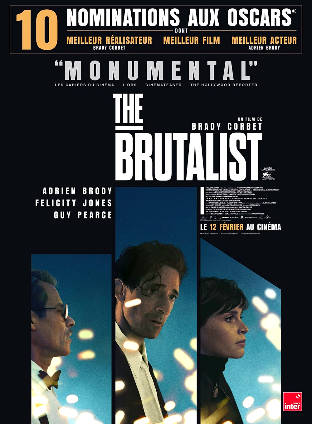 Pour info, afin que tout le monde puisse prendre une décision éclairée avant d'y aller : le film utilise l'intelligence artificielle. Une pour “améliorer” l'accent hongrois des acteurs non-Hongrois ; une autre, générative celle-là (c'est-à-dire qui vole le travail d'autres artistes pour “créer” quelque chose de neuf), pour toute une scène vers la fin du film.