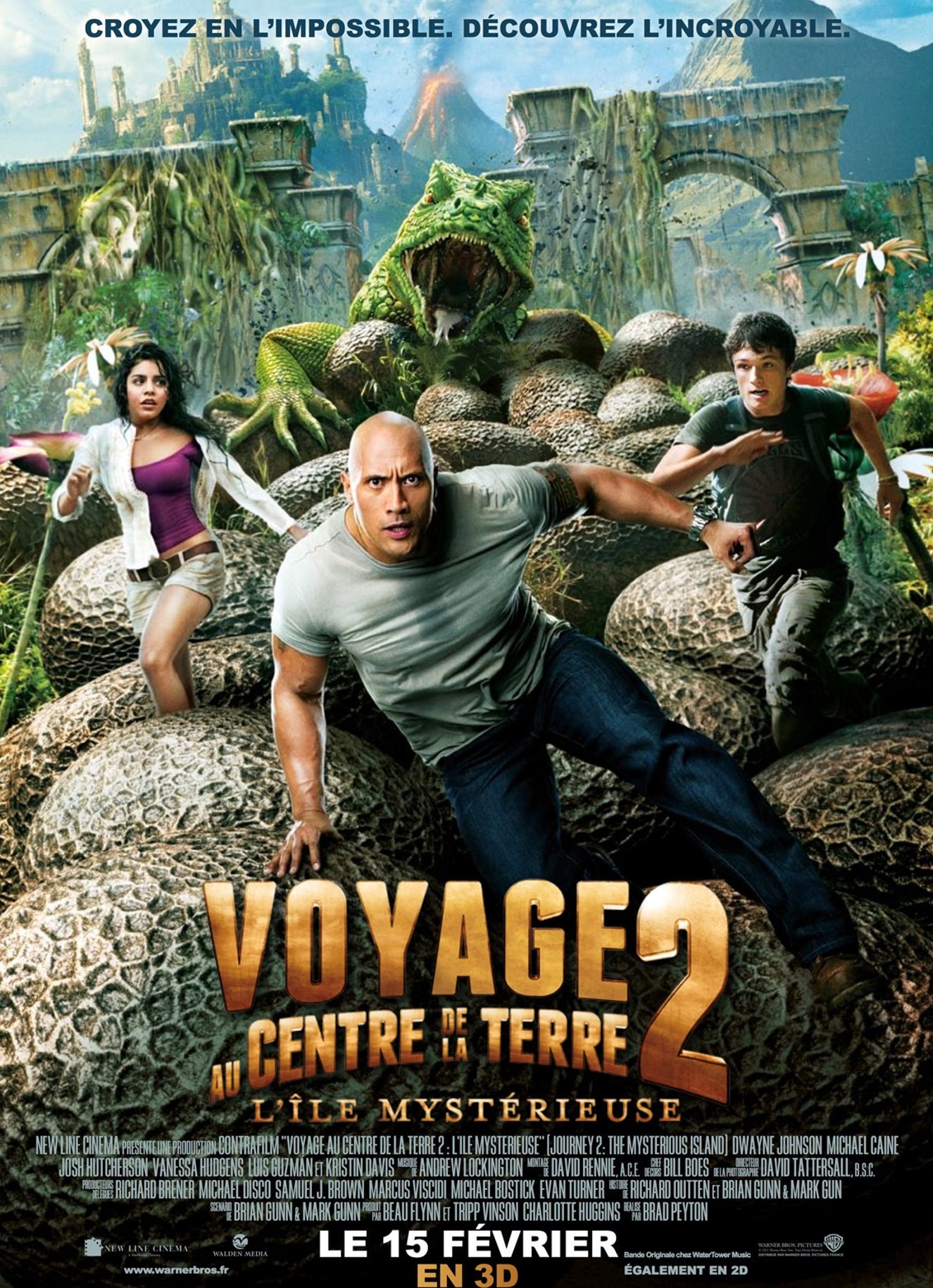 Jules Verne n’a jamais eu peur de l’avouer : « On peut braver les lois humaines, mais non résister aux lois naturelles ». Citation tirée directement de son magnifique roman d’aventure Vingt mille lieues sous les mers, celle-ci met très clairement en avant ce désir qu’avait l’homme de trouver des réponses aux questions d’ordre Humaines sans pour autant se permettre l’impossible. Si « Voyage au centre de la Terre » (2008), savoureux mélange d’action / humour, avait respecté avec élégance cette idéologie, c’est au tour du canadien Eric Brevig de se frotter au noyau de la terre, non sans une certaine appréhension. Et tout compte fait, ce dernier s’en tire avec les honneurs ! Menée par un Dwayne Johnson qui s’en sort honorablement (Brendan Fraser ayant placé la barre assez haute), l’équipe de ce second volet fait la belle part des choses, chacun apportant un petit plus nécessaire à l’embellissement d’une intrigue parfois douteuse. Josh Hutcherson, fidèle à lui-même, vit de nouvelles aventures hautes en couleur orchestrée par Andrew Lockington, déjà compositeur de la bande-musicale du premier volet.