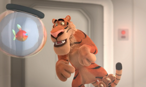 Un tigre, en échappant à son chasseur, se retrouve dans une station spatiale occupée par un astronaute et son poisson. (Source : Canal+)