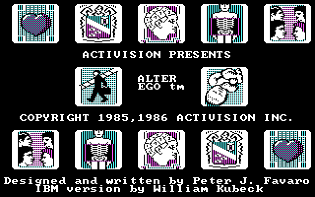Alter Ego is a role-playing video game released by Activision in 1986. It was created by Peter J. Favaro for the Commodore 64, MS-DOS, Apple II, and the Apple Macintosh. The game allows the user to make decisions for an imaginary person (being therefore the player's alter ego) and shows what possible consequences these decisions could have on that person.