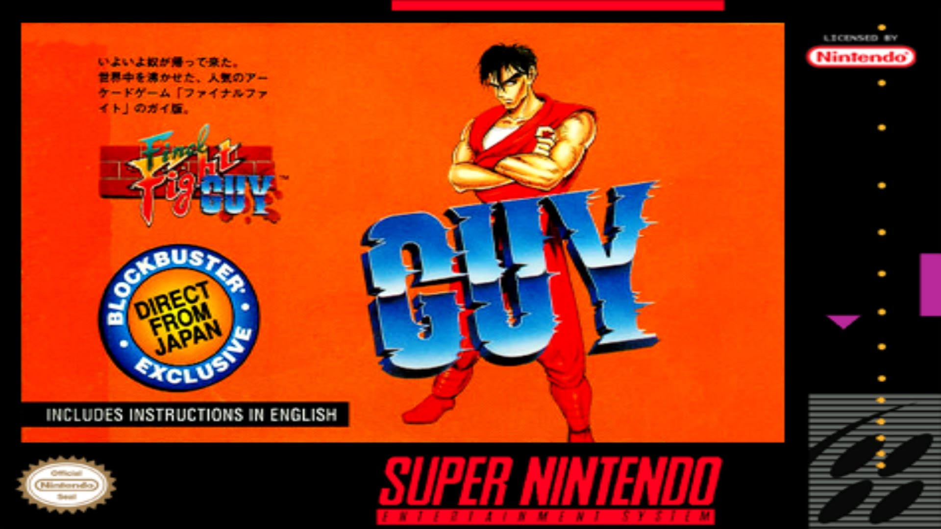 Final Fight Guy est un beat'em all sur Super Nintendo. Après avoir sauvé Jessica, la fille du Maire, Guy et Mike Haggar sont déterminés à expulser le gang Mad Gear de Metro City. En jouant avec l'un des deux personnages, vous parcourez les niveaux en éliminant les membres du gang. Vous pouvez vous aider des armes et des bonus cachés dans des barils ou à voler aux ennemis