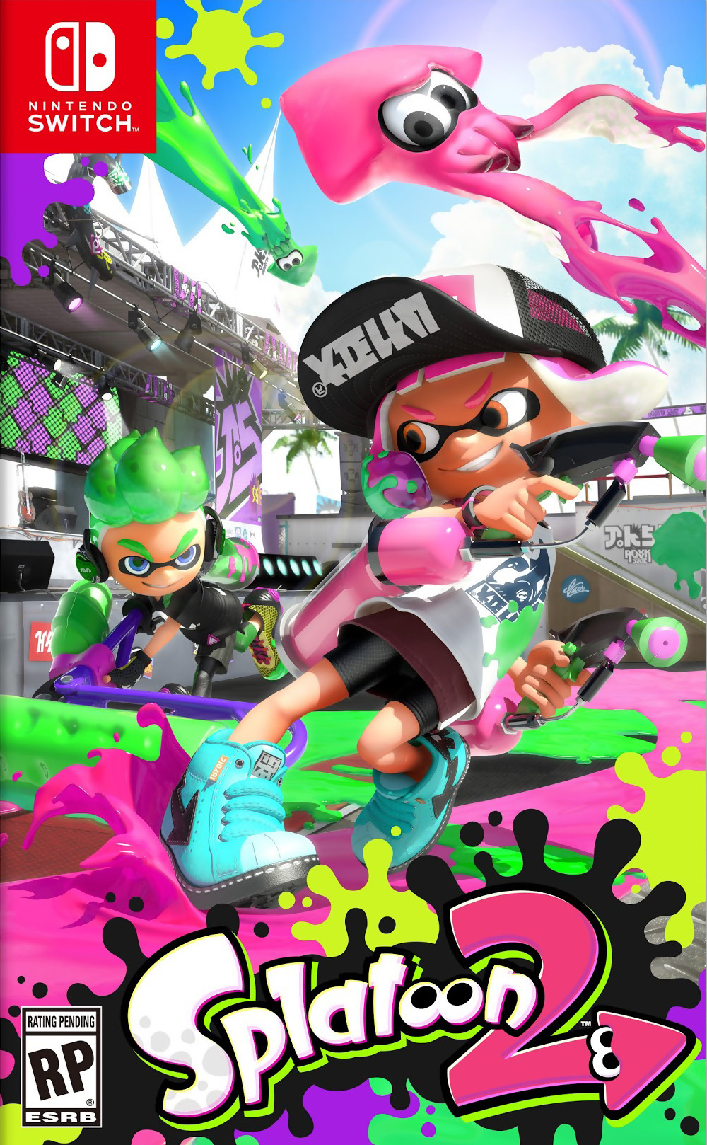 Description : Le jeu de tir et de peinture en multi-joueur déjanté est de retour sur Switch. Splatoon 2 reprend ce qui s'est fait de mieux sur Wii U pour l'adapter et le sublimer sur la nouvelle console de Nintendo. Parcourez des environnements entre amis, aspergez-vous de peinture et transformez-vous en calamars pour vous cacher dans les flaques colorées.