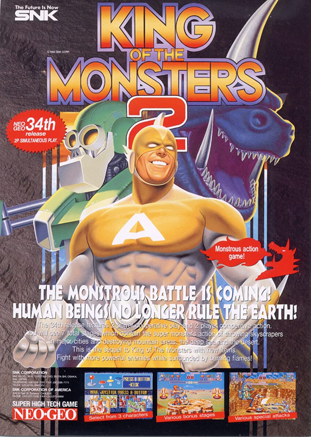 3 ans après les événements du premier jeu, seuls trois monstres ont survécu à ce que les livres d'histoire appellent le massacre du ROI DES MONSTRES. Ils sont devenus plus avancés et dangereux que jamais. Mais maintenant, en 1999, un puissant monstre extraterrestre et sa vague de sbires menacent de conquérir la Terre. Les monstres survivants doivent vaincre la menace extraterrestre et prouver une fois de plus qui est le roi des monstres.