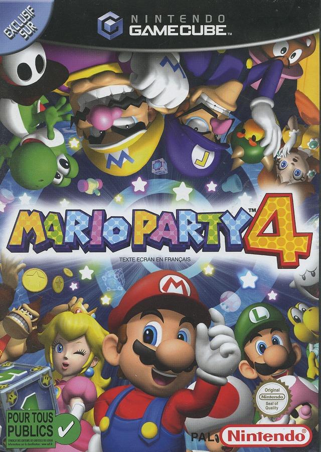 Mario Party 4 est un party-game sorti sur Gamecube. Mario et tous ses amis (et ennemis) se sont donnés rendez-vous pour participer à un gigantesque jeu de l'oie. Chacun à leur tour les joueurs lancent le dé et avancent de plusieurs cases avant de s'affronter les uns les autres durant des mini-jeux.
