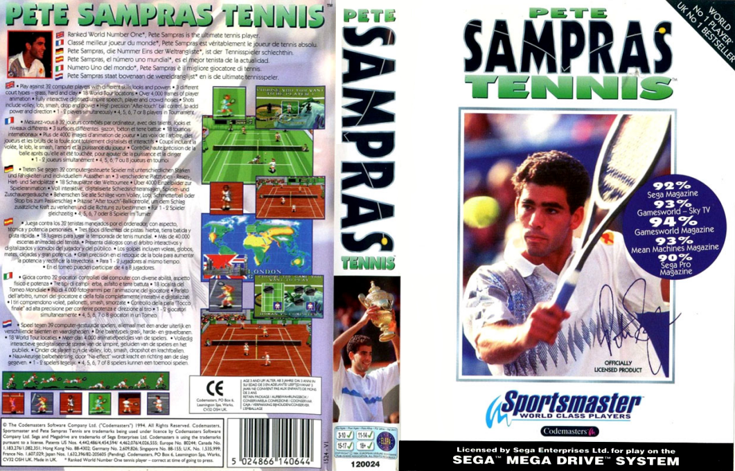 Pete Sampras Tennis est un jeu vidéo de tennis développé et édité par Codemasters sorti en 1994 sur MegaDrive. Il a connu une suite, Sampras Tennis 96. (Source: Wikipédia)