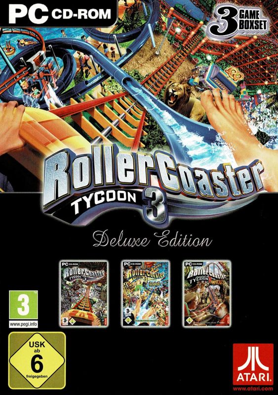 Compilation du jeu RollerCoaster Tycoon 3 et de ses deux extensions, Délires aquatiques ! et Distractions sauvages.